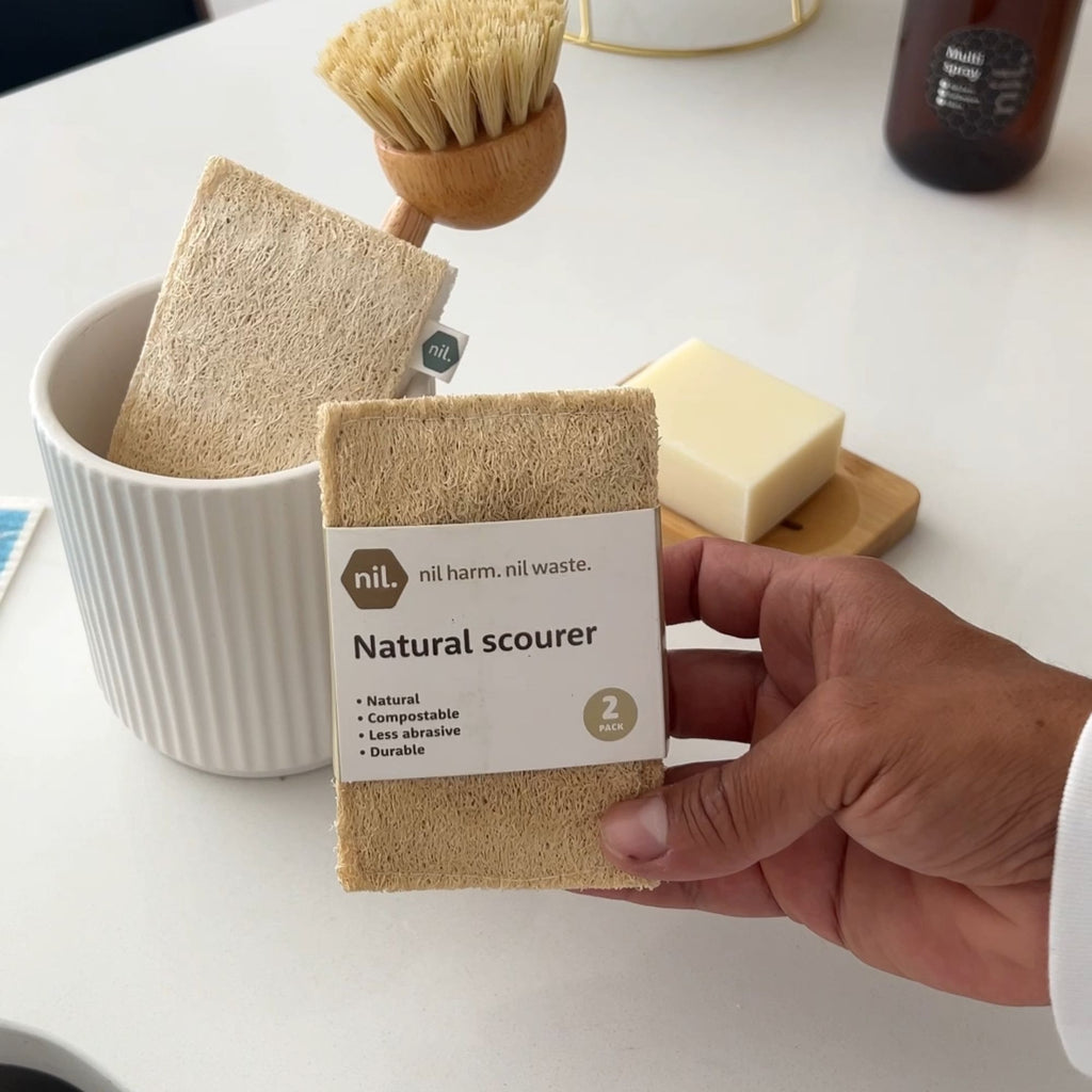 Good scourer, lasted longer than expected and glad they are eco friendly. Last longer if you keep them out if the water and drying otherwise they may fall apart faster. I have been using the first sponge in the pack for two weeks. It’s great! No separation, and no complaints from me!