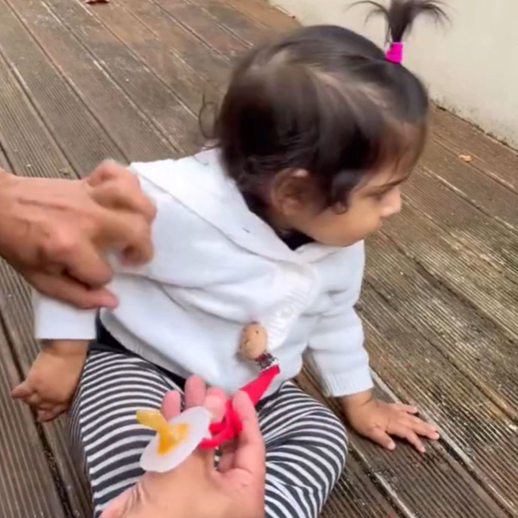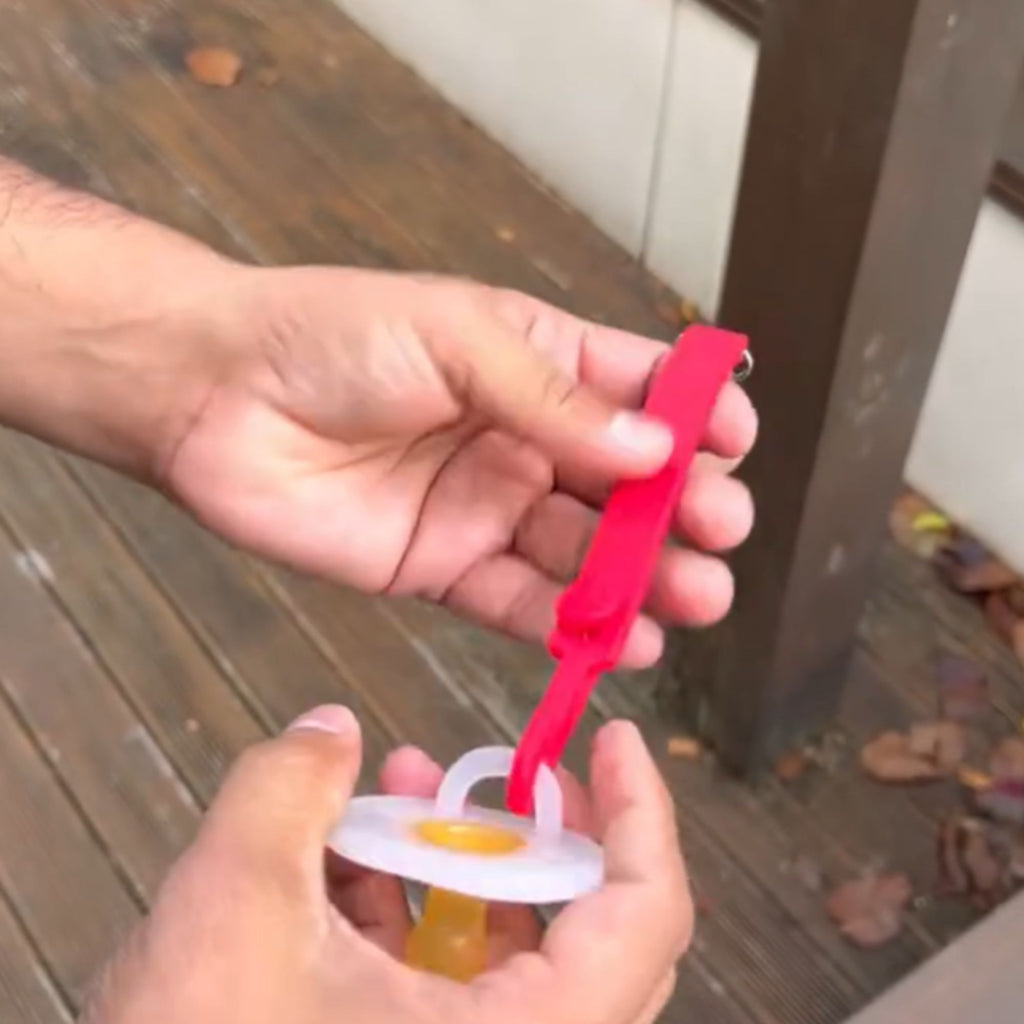 Keep dummies safe and in easy reach with our nil Dummy Chain. Fasten the attachable clip to babies clothes, so no more lost or dirty dummies!