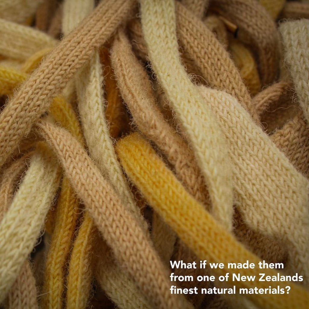Crafted from New Zealand Strong Wool sourced from Palliser Ridge, Woo Laces combine sustainability and durability in a shoelace designed to make a statement. Produced entirely in Aotearoa, with all materials other than the aglets made and grown locally, these laces showcase the beauty of natural fibres, traditional craft, and thoughtful design. Each pair is naturally dyed — Natural (undyed wool), Blue (dyed with red cabbage), and Brown (dyed with coffee grounds) — giving them a unique character that reflects the ingredients used.
